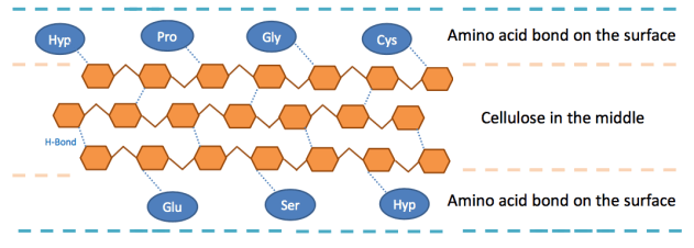Den måde, hvorpå “beklædningen” af viskose-fibrene, med kollagen-protein, rent teknisk og molekylært finder sted, er omgæret med inspirerende hemmelighed… Alle mulige fede buzz-words benyttes; Biomimetic , supramolecular material , biotechnology , biomimicry , engineering … -Jeg er selvfølgelig godt igang med at finde ud af hvad det EGENTLIG betyder;-) Det er svært spændende, for en nørd som jeg:-)