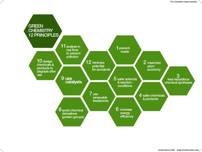 Definitionen på “grøn kemi” er: Design af kemiske produkter og processer der reducerer eller fjerner anvendelse og dannelse af skadelige forbindelser , og har rødder i US Pollution Prevention Act fra 1990