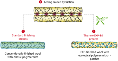 EXP is the first wool finishing process in the world to meet the strict criteria of the “bluesign