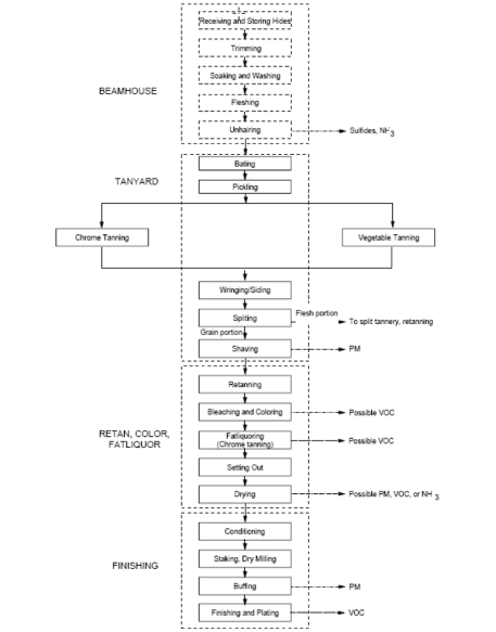 “I princippet er garveprocessen enkel. Efter fjernelse af hår skal huden først blødgøres og vaskes i vandbade med salt og sæbe, hvorefter resterende fedt- og oliestoffer trækkes ud med organiske opløsningsmidler. Derefter konserveres huden med garvemidler, hvorved vævet bliver fikseret og bestandigt. Til sidst bankes fedt og olie igen ind i huden for at gøre den blød og smidig, og den garvede hud tørres”.